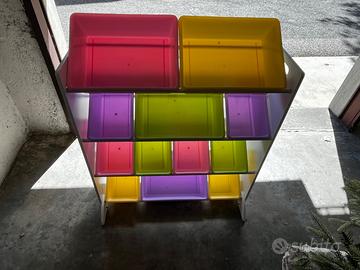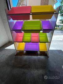 Vendo porta giochi con cesti individuali, oggetto utile per selezionare i giochi separatamente e per facile gestione nel riporli.