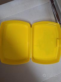 Vendo 2 contenitori porta merenda di colore giallo e disegno dei mignons. Ottime condizioni.