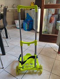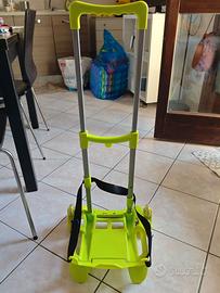 Porta zaino con 3 rotelle per salire anche i gradini di colore verde.