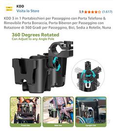 - Design 3 in 1: portabicchieri, porta telefono e porta biberon.