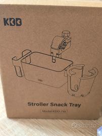Pratico portabicchieri universale per passeggino, ideale per tenere a portata di mano bevande e telefono.