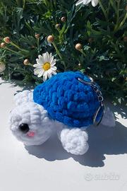 Portachiavi a forma di tartaruga realizzato a mano con l'uncinetto.