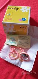 Catena per ciuccio con piastra in argento smaltato per neonata Titti, vedi foto per caratteristiche nuovo