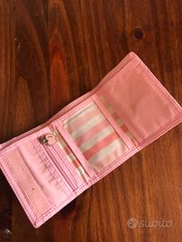 Portafoglio Frutta a righe rosa e bianche, con scritta con strass sul retro (tutti presenti).