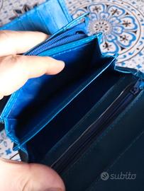 Portafoglio multitasche simpatico in blù, vedi misure in foto, usato poco/raramente, in quasi ottime/+ che buone condizioni, a 4€,. ho anche altri annunci,.