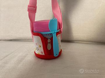 Thermos in Acciaio dalla forma a barattolo il cucchiaio dalla forma particolare che funge anche da forchetta è incluso e si aggancia al barattolo, con borsa termica colori assortiti. Materiali sicuri per bambini. Campionatura nuova senza confezione, sconto 10% per 2 pz, sconto 15% per 3 o più pz