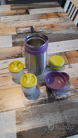 Vendo portapappa termico in acciaio inox Chicco. Mantiene caldi o freddi i pasti e le bevande dei vostri bambini fino a 5 ore. Include due recipienti da 250 ml.