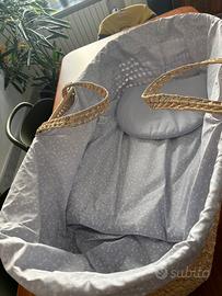 Portenfant in vimini Rivestito e completo di cuscino. Mai usato