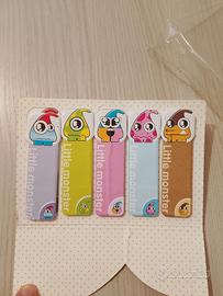Vendo post it / segnapagine / sticky notes, di 5 colori diversi, con piccoli disegni dei 5 personaggi Little monster