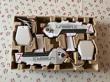 Vendo pistole Laser X Revolution e 2 ricevitori in perfetto stato, usate 3 volte. Marca Giochi Preziosi. Si può scegliere tra più di 20 colori per squadra. Colpisce fino a 90 metri. Effetti luminosi e sonori, ottime per sfide al buio.