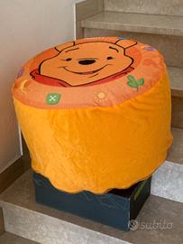 Pouf Winnie The Pool gonfiabile con copertura vellutata in acrilico con chiusura a cerniera in tina, lavabile in lavatrice a 30 gradi. Usato come gioco o come seduta per bambino fino a 6 anni. Usato pochissimo perché a casa della nonna
