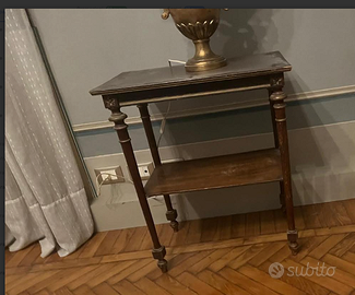 ARTICOLO RARO: TAVOLO/MOBILE ETAGERE in stile VITTORIANO a tre ripiani in noce con torniti. Antico riconducibile alla fine dell'800. CONDIZIONI: ottimo stato conservativo ma essendo un articolo antico/vintage può presentare i lievi segni del tempo che ne attestano l'originalità e il fascino. Proveniente da collezione privata Villa Veneta del '900. MISURE: L60xh70xp39cm. VISIBILE e RITIRABILE zona Treviso. STORIA: Questo mobile noto come étagère, divenne popolare durante l'epoca vittoriana (1837-1901) come elemento decorativo e funzionale nei salotti borghesi. Serviva per esporre oggetti preziosi, libri, ceramiche e curiosità, riflettendo il gusto vittoriano per l'accumulo decorativo e la dimostrazione di status sociale.