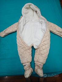 Tutone imbottito per le fredde giornate invernali, con cappuccio, copri manine e copri piedini removibili. Dotato di morbida e calda imbottitura, tutone facilmente lavabile in lavatrice.