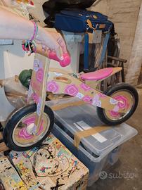 Bici senza pedali in legno per bambina, mai usata ma ruote da verificare camera d aria