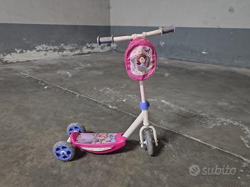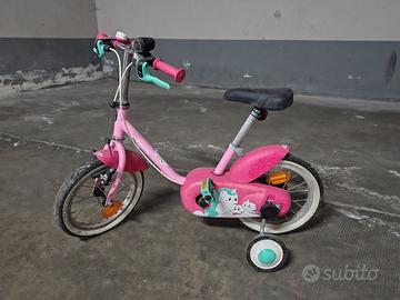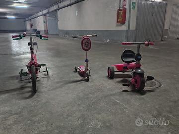 Perfette per le belle giornate in arrivo! Bicicletta bambina Decathlon B'Twin 500 Unicorn con ruote da 14 pollici con rotelle removibili a mano, protezione contatto gambe da catena e corona, leve freno facilitate, campanello e lucina frontale per le passeggiate serali. Monopattino bambina facilitato a 3 ruote Disney Pricess Sophia con borsetta porta oggetti frontale. Triciclo bambina con seduta comoda, grandi pedali, campanello e vano porta oggetti posteriore con coperchio. ideale per chi vuole avvicinare la propria bambina/nipotina al percorso dell'equilibrio e dell'autonomia in bici. La vendita del trio è da considerarsi in blocco.