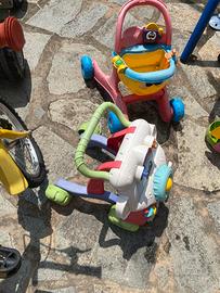 Vendo 2 primi passi, 1 bici senza pedali, 1 bici con pedali e rotelle, 1 macchinina a spinta.