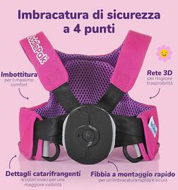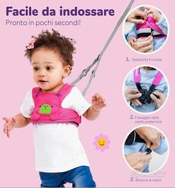 Bretelle primi passi comode e veloci da indossare. La pettorina protegge il bimbo quando tira per allontanarsi, ma senza stringere o lasciare segni sotto le braccia. Molto utile soprattutto con gemelli o più bimbi piccoli.