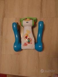 Primi passi Chicco ergo gym è idoneo per bambini di età superiore a 9 mesi. Ideale per avviare i bambini alla postura corretta. I passi del bambino sono accompagnati da luci e melodie sonore. In base alla velocità della sua camminata, le luci e il ritmo delle canzoncine aumentano progressivamente. Richiudibile, Dimensioni: 38 x 44 x 42 cm, Peso: 2,2 kg Pile: n. 2 di AA