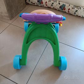 Giocattolo elettronico per imparare a camminare con 2 modalità di gioco man mano che il bambino cresce: gioco da seduti o in piedi.