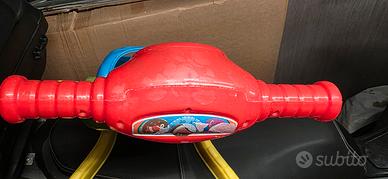 Carrellino primi passi #Clementoni "Valentino Scooterino", adatto dai 9 mesi in poi , usato ma sempre funzionante (ci sono solo da cambiare le due pile AA all'interno), completo delle formine da inserire nel cestino frontale incastraforme.