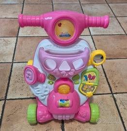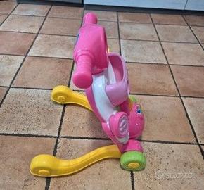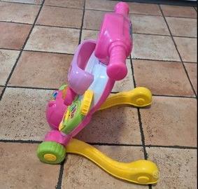 Scrivere su whatsapp se interessati 3288525586 Possibilità anche di scambio a mano via suor Maria Agostina a Roma Scooterino tutto rosa pensato per accompagnare le bambine durante la fase dei primi passi e anche un divertente centro attività educativo parlante. Insegna le lettere e i numeri in italiano e in inglese. Aiuta a sviluppare la motricità, il linguaggio, l'immaginazione, la percezione visiva e uditiva; con tanti suoni e allegre canzoncine. Bilingue italiano e inglese. Funziona con 2 pile AA/LR6. No scatola originale. Altezza 51 cm Profondità 43 cm Larghezza 42 cm Mancano le 3 formine. Per il resto perfettamente funzionante.