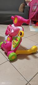 Per bambine primi passi e gioco. Insegna lettere, numeri in italiano e inglese. Con suoni e canzoncine. Cestino incastraforme dove inserire 3 formine incluse. Funziona con 2 batterie AA non incluse.