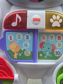 Attività manuale per bambini seduti, con pulsanti luminosi da premere per canzoncine da cantare e frasi