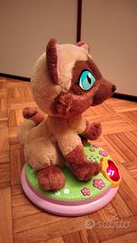 Principessa Amy dei Cuccioli Cerca Amici di Giochi Preziosi. Cliccando sul cuore rosso o sui fiori rosa canta e racconta brevi storie dondolando la testa. In morbido peluche, attaccata alla base di plastica. Funziona con 4 pile Stilo non incluse. Perfettamente funzionante, ottime condizioni