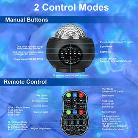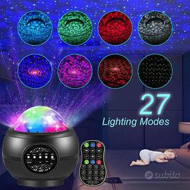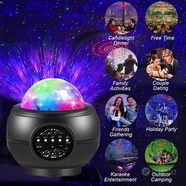 Proiettore cielo stellato con riproduzione audio e 27 effetti grafici e 5 intensità luminose, si può comandare con i pulsanti o con il telecomando. Perfetto per feste e intrattenimento (bambini e adulti)