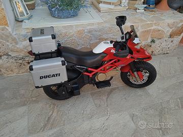 Moto Elettrica Ducati Enduro 12 Volt Peg Perego Ruote in gomma dura. Possibilità di passaggio a 6 Volte con semplice interruttore. Agile e ricca di dettagli regala avventure indimenticabili anche su terreni sconnessi.