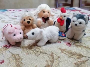 Vendo come da foto n 6 pupazzetti piccoli originali marcati Trudy. Maialino, orsetto riccio, gallo, husky, pecora.