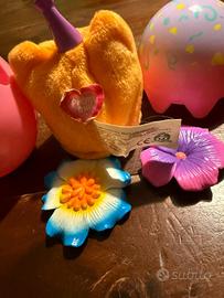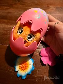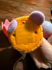 Uovo con dentro pupazzetto che spingedo dietro dice”Mi piace scherzare “ e mangia fiori.. spingendo il fiore alla bocca emette suono.
