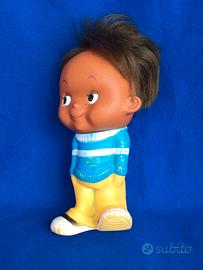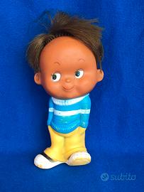 Pupazzo in gomma dura, vestito con maglia bianco celeste tipo scugnizzo con capelli. Figura tipica caratterizzata Anni 70. cm. 22