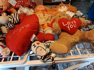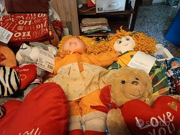 Sacco di pupazzi, peluches e bambole "Pigotta" originali. 5 EURO AL PEZZO. A chi prende tutto REGALO cuore mega divisibile in due parti tramite comoda cerniera. Usati ma in buonissime condizioni.