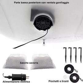 Dotato di ventola interna e alimentatore elettrico, il pupazzo si gonfia in pochi istanti ed è autoportante, stabile e semplice da posizionare. L’installazione è immediata e non richiede esperienza: basta collegarlo alla corrente e in pochi secondi prende forma, diventando un’attrazione irresistibile per grandi e piccoli.