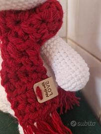 Pupazzo di neve realizzato all'uncinetto, perfetto per decorare durante le feste.