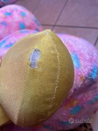 Pupazzo grande unicorno con occhi con brillantini leggermente graffiati e alcuni buchi