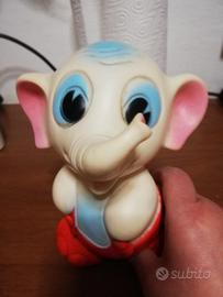elefantino in gomma,raro da trovare con logo dell elefantino ledra m.der .h cm 18 circa.fischietto funzionante.giocato ed in buonissime condizioni.vintage,made in italy.come da foto e descrizione.il colore in lievissimi punti puoò avere leggere mancanze.