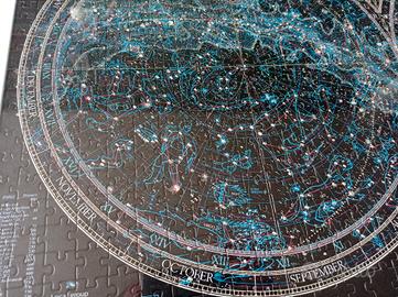 il puzzle ha parti fluorescenti, se illuminato prima, al buio diventa fluorescente.