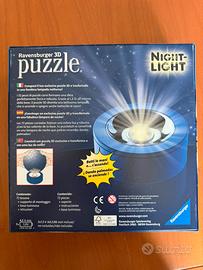 Puzzle 3D Ravensburger originale Minions (Cattivissimo Me 3) da 72 pezzi. Una volta montato diventa una sfera luminosa con base LED, ideale come lampada notturna o decorazione. Condizioni ottime, completo di scatola e componenti. Luce non testata recentemente (funziona con 3 batterie AA non incluse). Diametro circa 13 cm, facile da montare grazie al sistema Easyclick. puzzle 3d, ravensburger, minions, lampada, night light, bambini, gioco, decorazione, regalo bimbi, regalo bambini