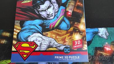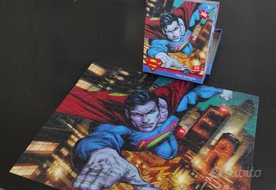 Puzzle 3D Superman - 500 pezzi - raffigurante Superman in volo su Metropolis. Condizioni perfette nei colori e nella struttura. Sia il puzzle che la scatola non presentano nessun segno di usura. Il puzzle ha una struttura più solida dei normali puzzle in commercio, al punto che rimane compatto e si tiene per un angolo senza rompersi (foto 6). Montato per fare le foto e dimostrare che sono presenti tutti i pezzi. Marca: Prime 3D Puzzle Adatto a: dai 6 anni in su. Dimensioni: 61 cm x 46 cm. N. pezzi: 500