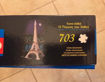 Il prodotto nella foto si chiama "Puzz 3D La Tour Eiffel".Si tratta di un puzzle 3D della Torre Eiffel prodotto da Milton Bradley nel 1995.Il puzzle è composto da 703 pezzi di cartone espanso e, una volta assemblato, raggiunge un'altezza di 102 cm. Aperto e montato una volta.