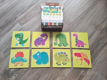 Obiettivi educativi: intelligenza spaziale, memoria, forme e colori, scoprire il mondo intorno, conoscere i dinosauri, sviluppare la manualità fine