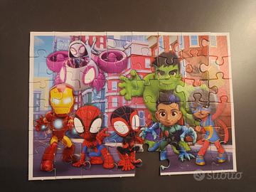 Puzzle and Game 4in1 Spidey, contiene 2 puzzle, un memori e 6 cubi. Adatto a 3anni +. Ad un puzzle manca una tessera. Possibilità di consegna anche a mano zona Carvico o comuni limitrofi oppure Stezzano ( x Stezzano solo giorni lavorativi feriali).