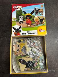 Puzzle Bing della Lisciani,ideale per i più piccoli,la scatola e un po rovinata ma ci sono tutti i pezzi,personaggio del cartone animato Bing eta consigliata da +1 anni