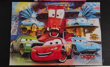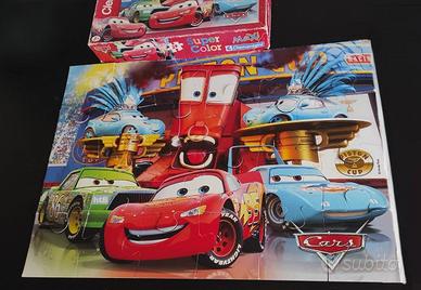 Puzzle della Clementoni raffigurante personaggi del Film "Cars", Disney Pixar Cars. Il puzzle è tenuto bene, mentre la scatola è leggermente rovinata, come si vede in foto. Età: adatto per 3+ Dimesioni: 68 x 48 cm In Regalo: tessere Memo (con 20 tessere) dello stesso cartone animato