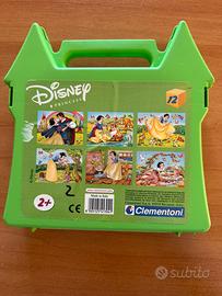 Puzzle Clementoni con i personaggi delle Principesse Disney, raffigurante Biancaneve e il Principe. - Custodia a forma di castello. - Immagine di Biancaneve e il Principe. - Logo Disney.