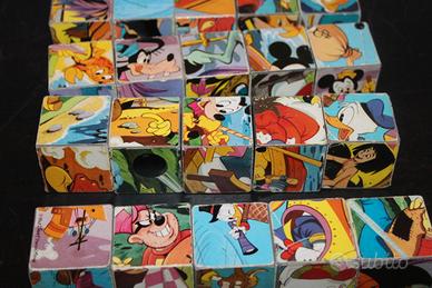 In vendita un puzzle 3D vintage a cubi Disney prodotto da Clementoni negli anni ’80/’90, realizzato interamente in Italia, come riportato chiaramente sulla plastica della confezione.
