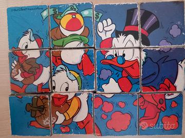 2 Puzzle da 20 e 12 pezzi degli anni 80 Libro della Giungla e cartoni vari Disney. Alcuni cubi hanno segni da usura, 1 blocco scolorito da un solo lato. Originali. Ogni puzzle ha 6 figure. Vendo insieme.Senza valigetta.