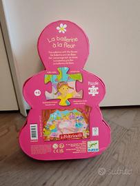 Splendido puzzle per bambini della Djeco, intitolato "La ballerine à la fleur" (La ballerina con il fiore). Il puzzle è composto da 36 pezzi grandi, ideali per bambini dai 4 anni in su.